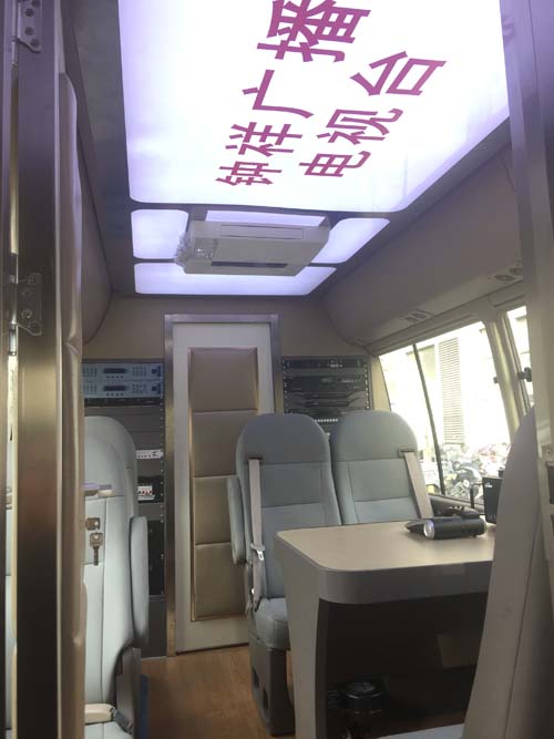 2018年8月底,我公司中標鐘祥廣播電視臺直播車及直播設備采購項目。直播車采用豐田考斯特作為底盤,車內分為駕駛區(qū)、播音區(qū)、采訪區(qū)和設備區(qū),充分利用車內空間,布局合理。