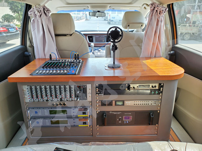 廣播直播車應(yīng)具有室內(nèi)直播間的所有功能,以全向數(shù)字微波、無線調(diào)頻發(fā)射和衛(wèi)星傳輸相結(jié)合作為傳輸方式,獨立完成音頻節(jié)目的錄播、直播和傳輸,行進車隊的移動直播和傳輸,能成室內(nèi)外場地的現(xiàn)場擴聲,是一個流動播出載體。