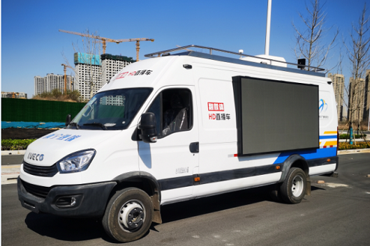 西寧廣播電視臺(tái)融媒體HD直播車(chē)采用6.99米依維柯底盤(pán),四工位型內(nèi)飾布局。配備戶外展示大屏。